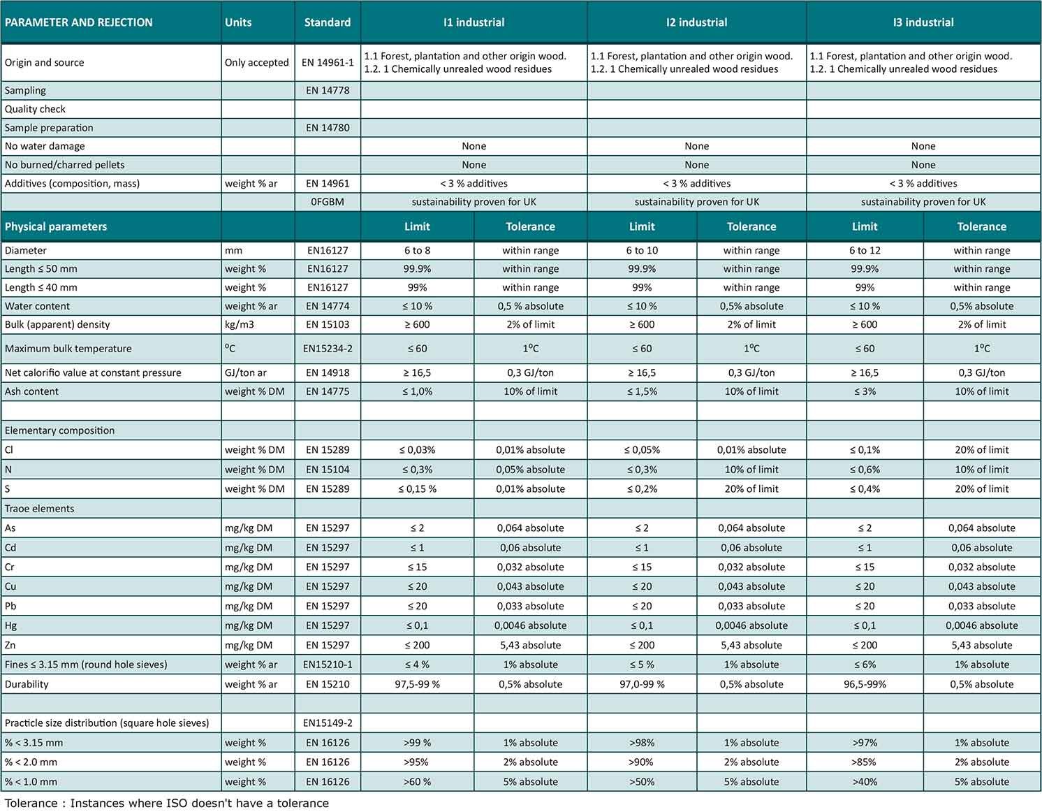 We will start producing wood pellets with Industrial I2 quality and in the future can adjust to buyer demand. The Industrial quality table of wood pellets is as follows: